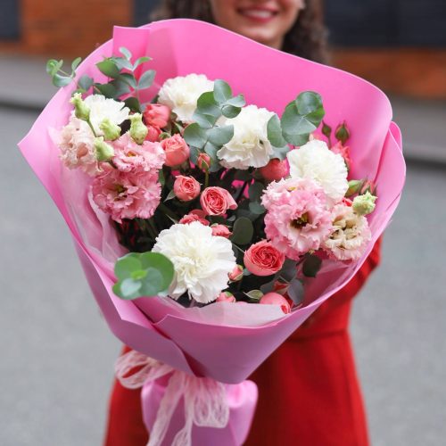 Очаровательный букет с розами и диантусами