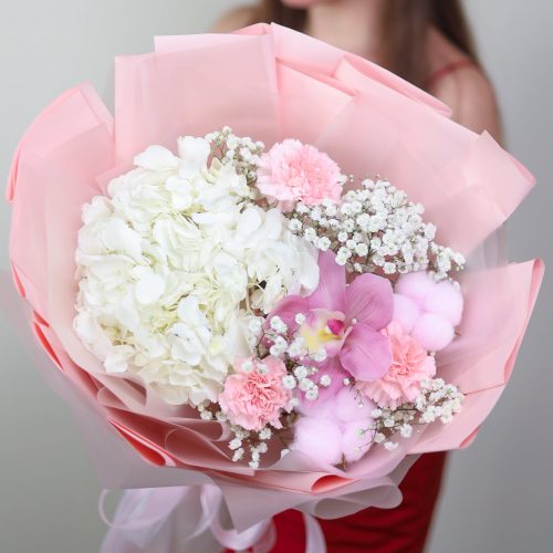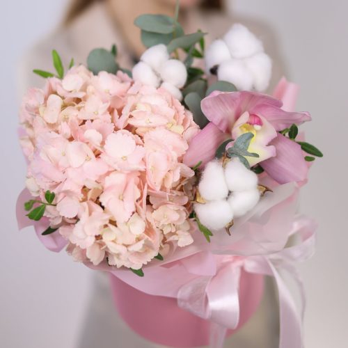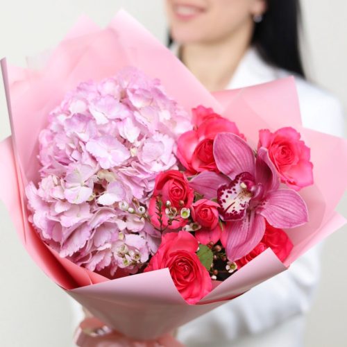 Нежный букет в розовой гамме с гортензией