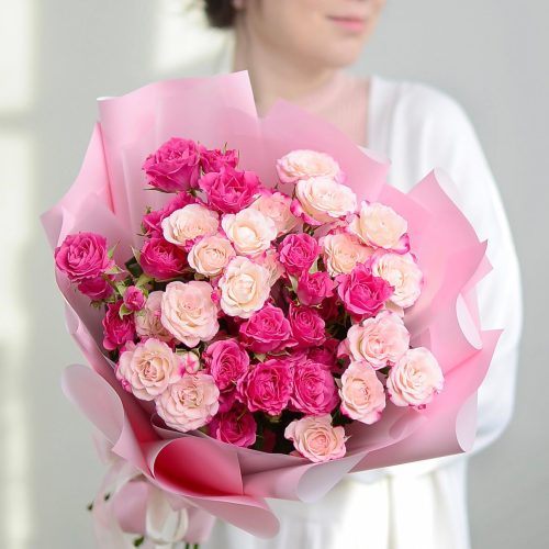 Букет кустовых розочек в оформлении