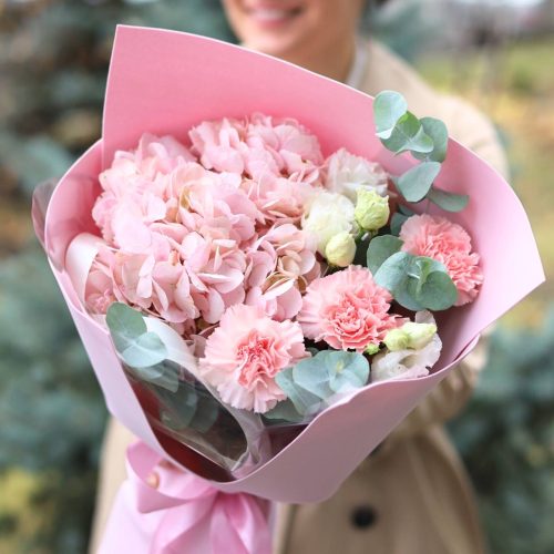 Нежный букет с гортензией и диантусами
