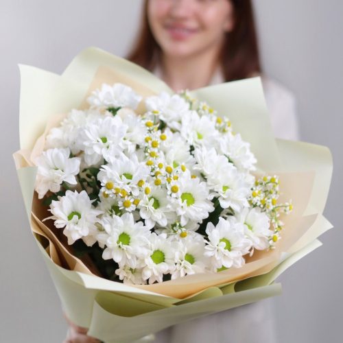 Объемный букет хризантем и ромашек