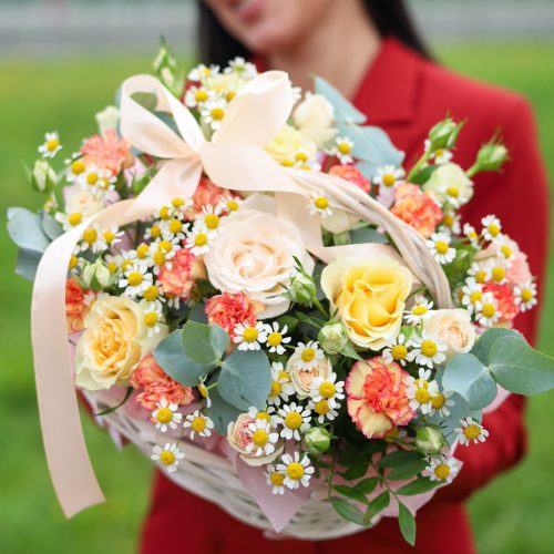 Ароматная корзинка с ромашками и розами