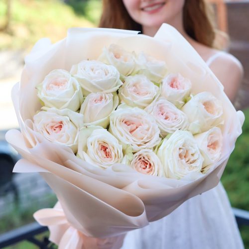 Букет белых пионовидных роз