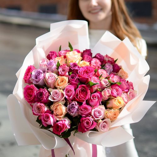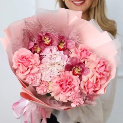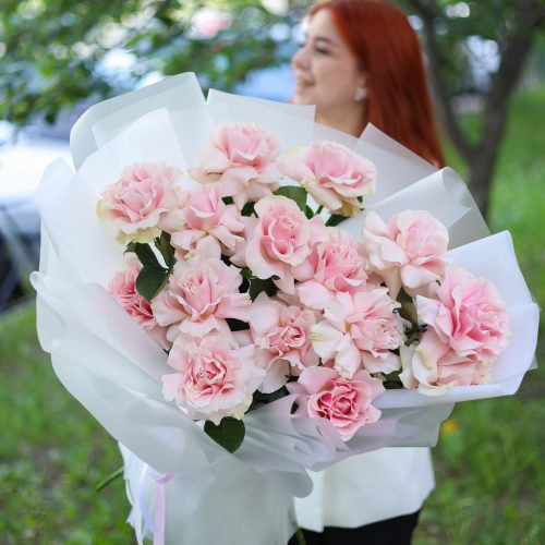 Большой букет розовых французских роз