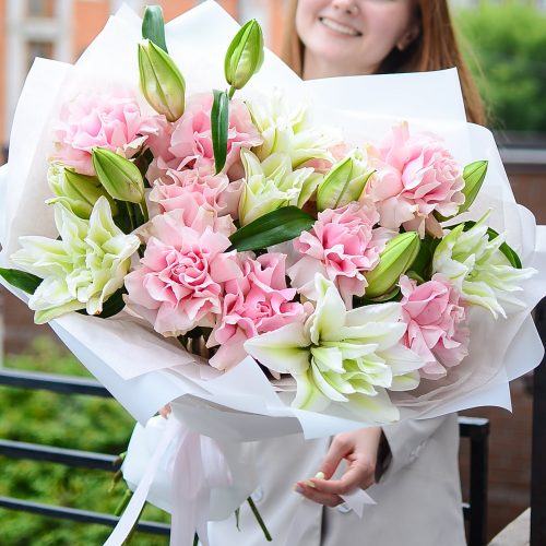 Большой букет с лилиями и французскими розами