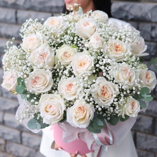Роскошная композиция с крупными пионовидными розами