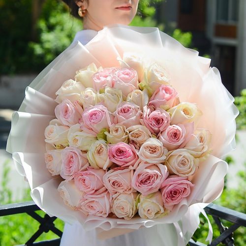 Букет из 101 белой и розовой розы