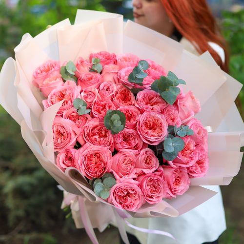 Роскошный букет крупных ароматных пионовидных роз