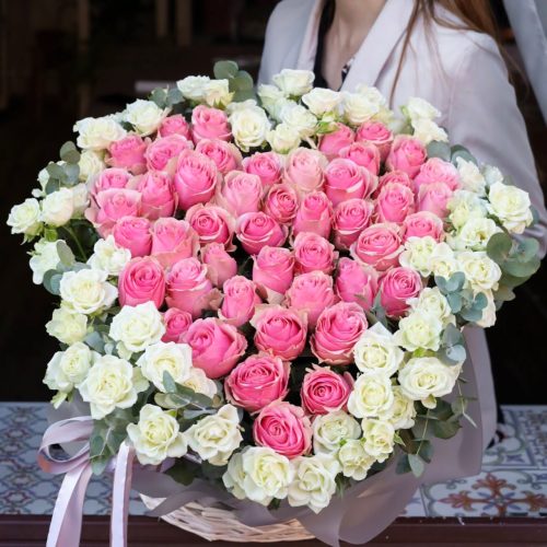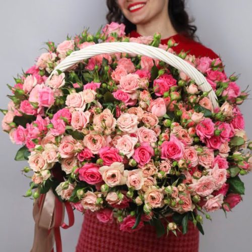 Большая корзина кустовых роз