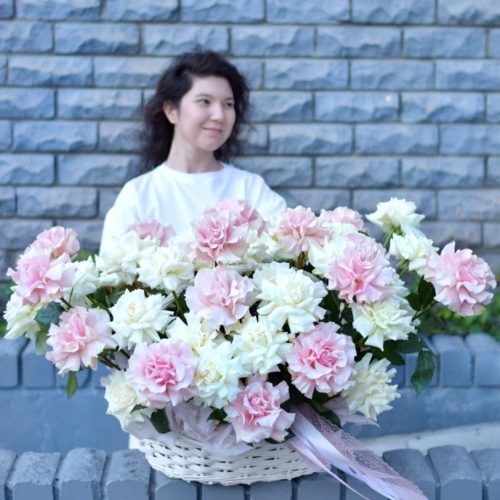 Роскошная корзина крупных французских роз