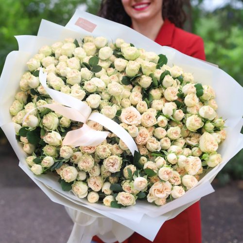 Большой букет кустовых пионовидных роз