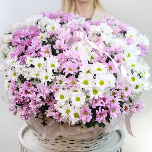 Большая корзина стойких хризантем