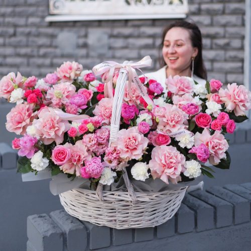 Изящная корзина крупных ароматных цветов