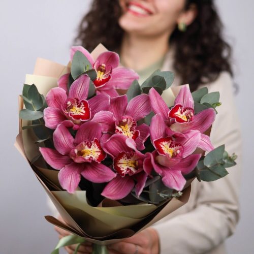 Букет орхидей и эвкалипта
