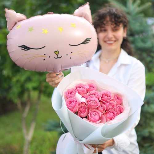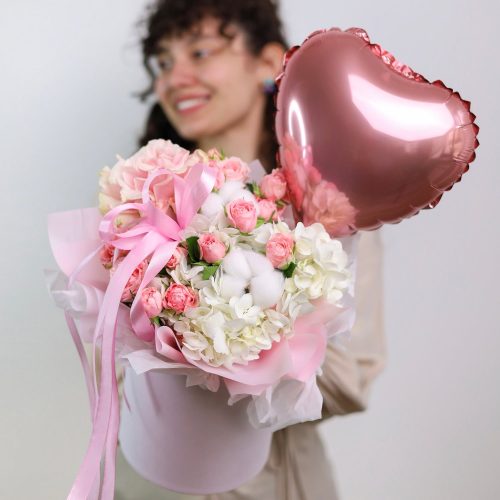 Праздничная цветочная композиция с шаром