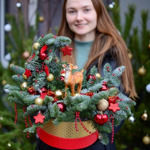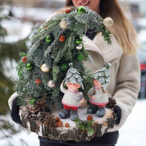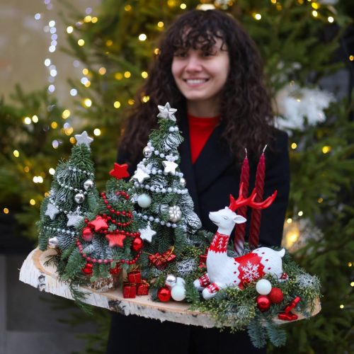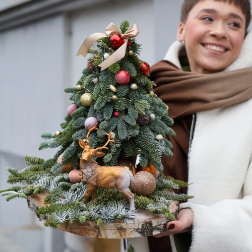 Праздничная композиция с ёлочкой и новогодним декором