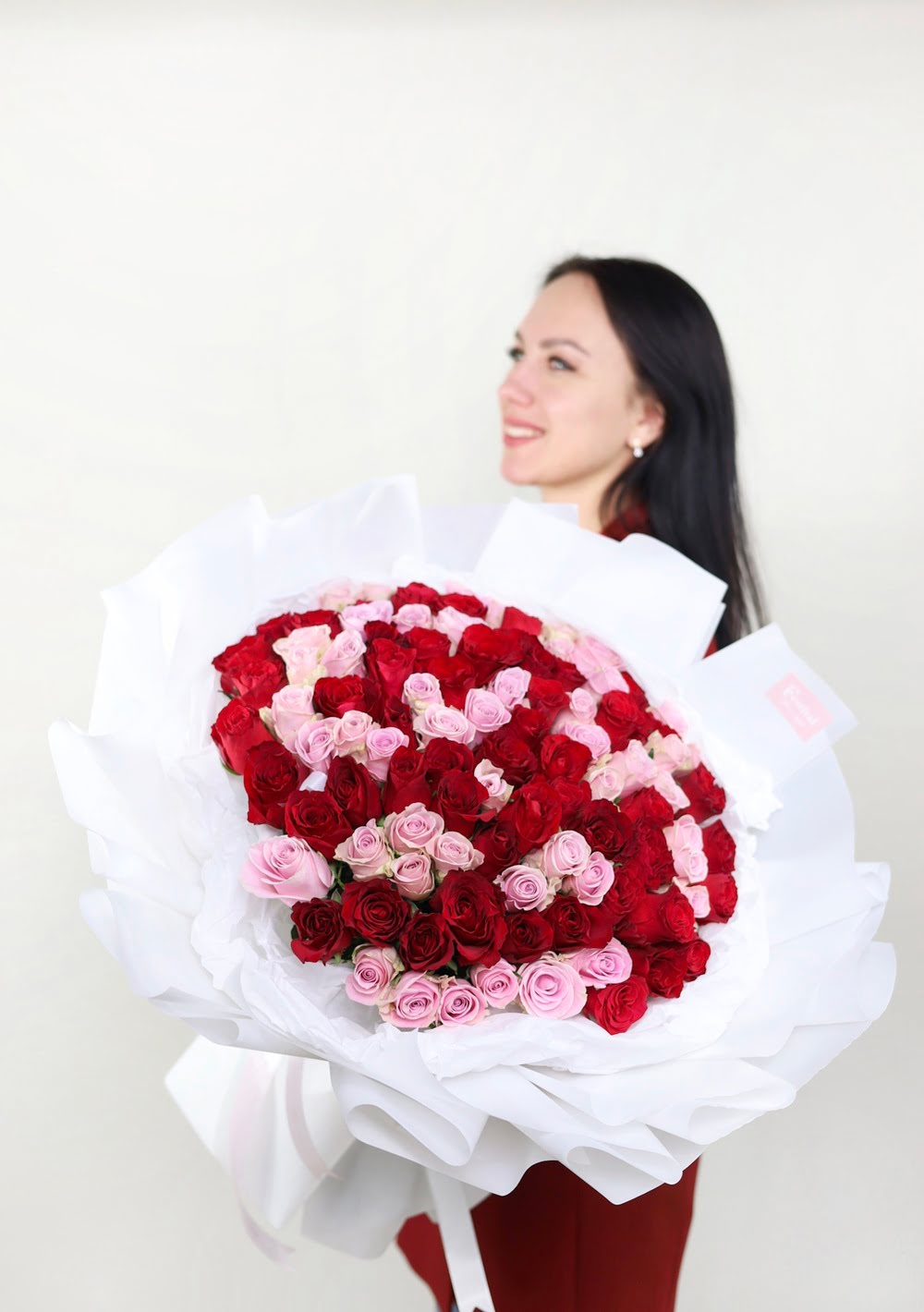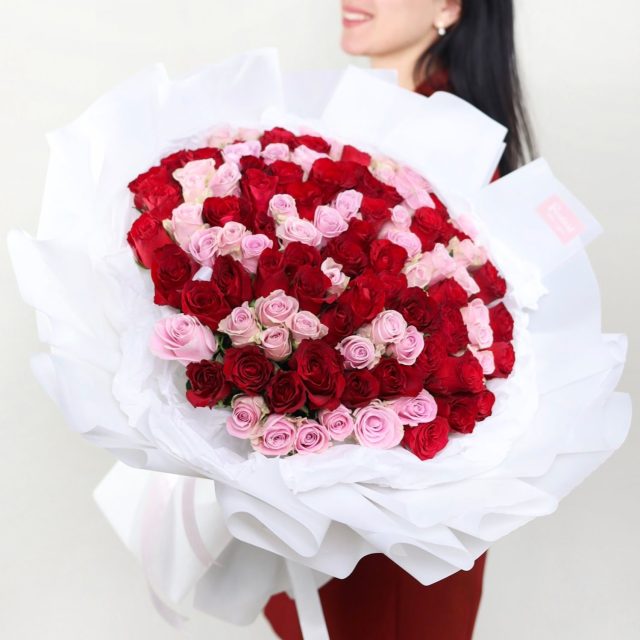 Все букеты собираются максимально похожими, в том числе и оформление.