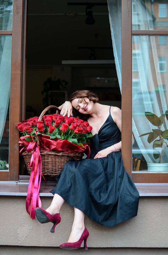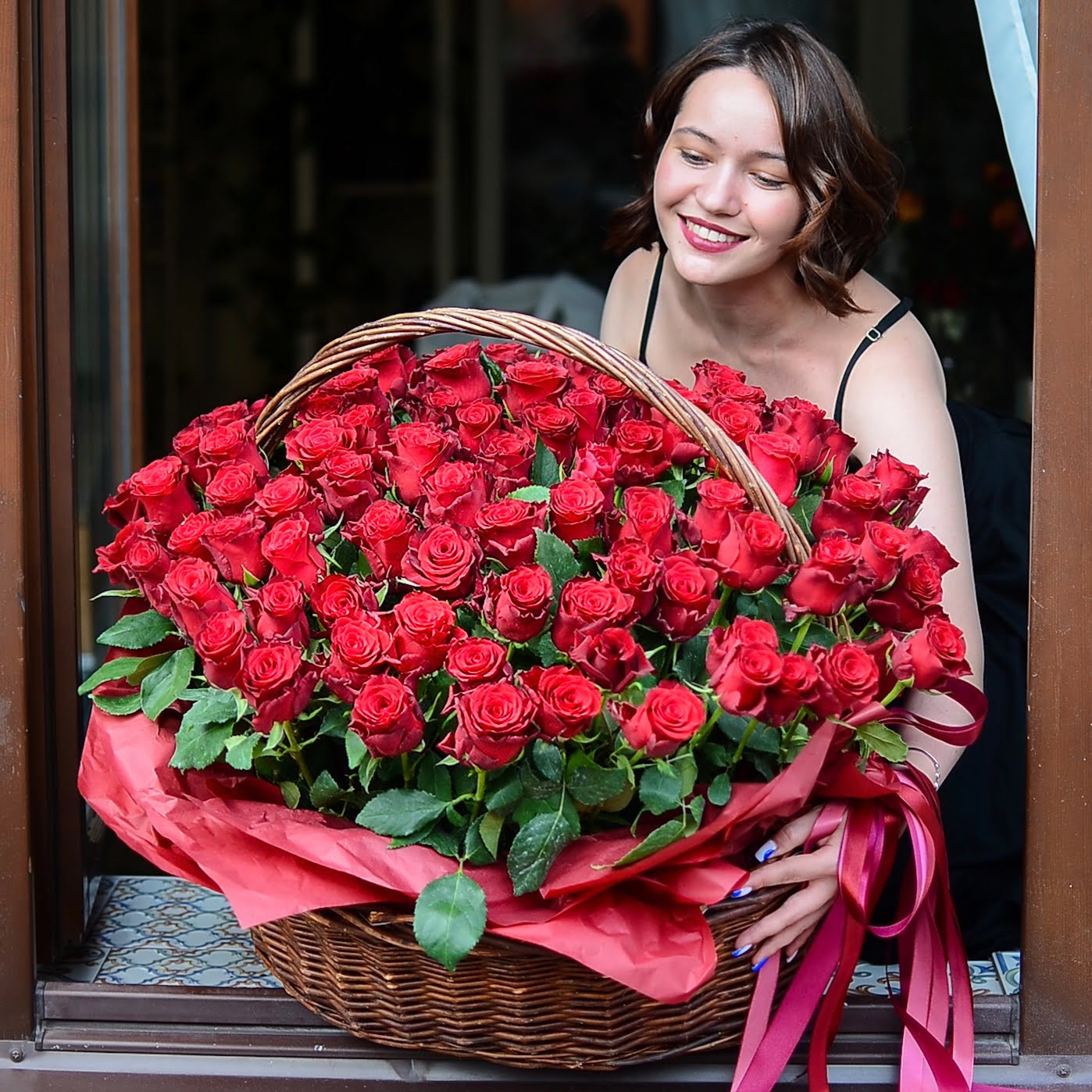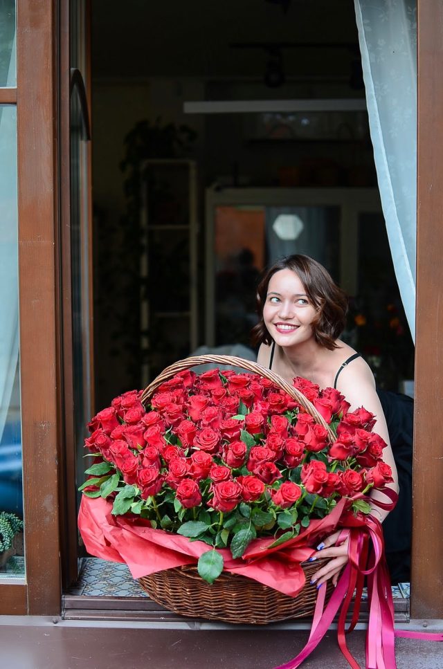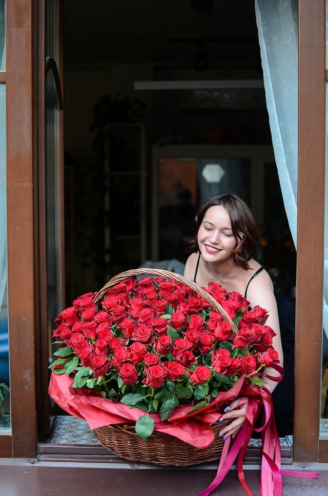 101 красная роза в корзине