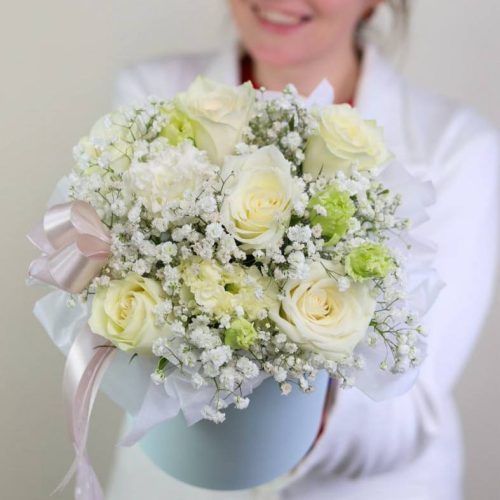 Букет белых роз в оформлении