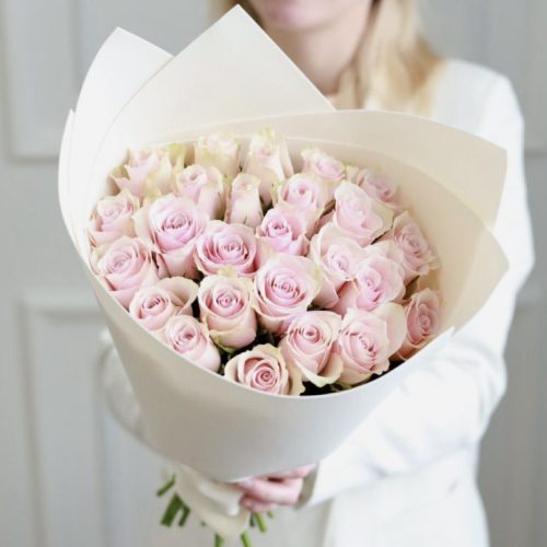 Чудесный букет из 25-ти белых роз в оформлении.