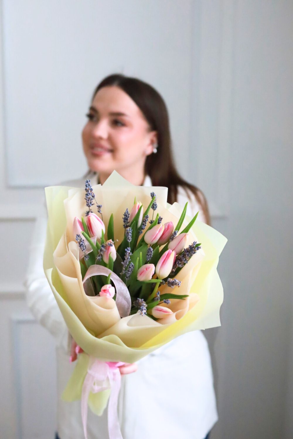 Ароматный букет тюльпанов с лавандой