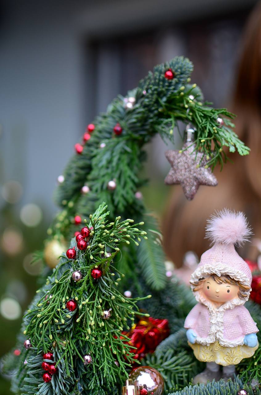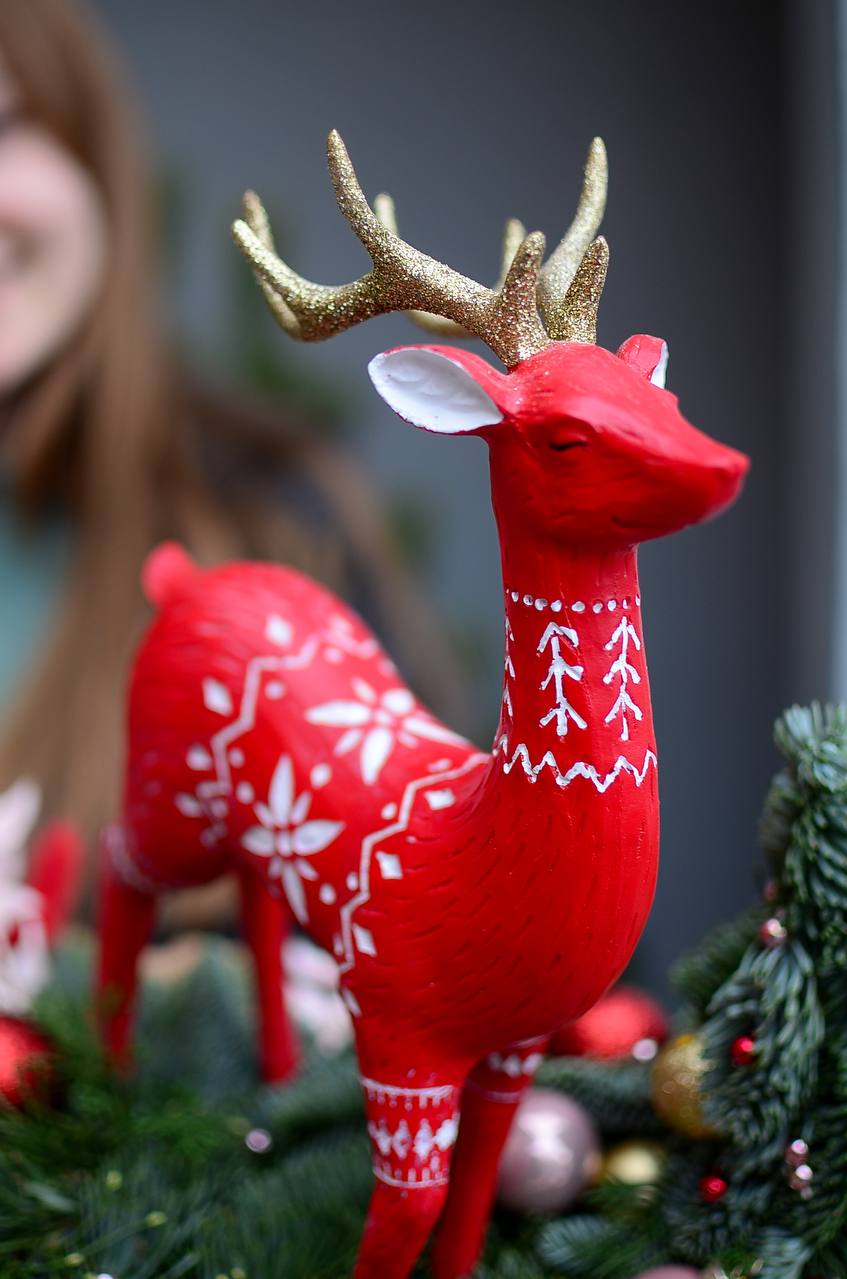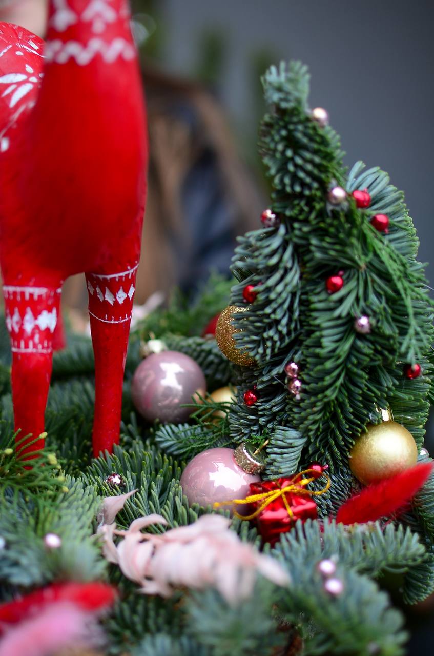 В композиции: нобилис, туя, новогодний декор, сухоцветы, куколка и фигурка оленя.
