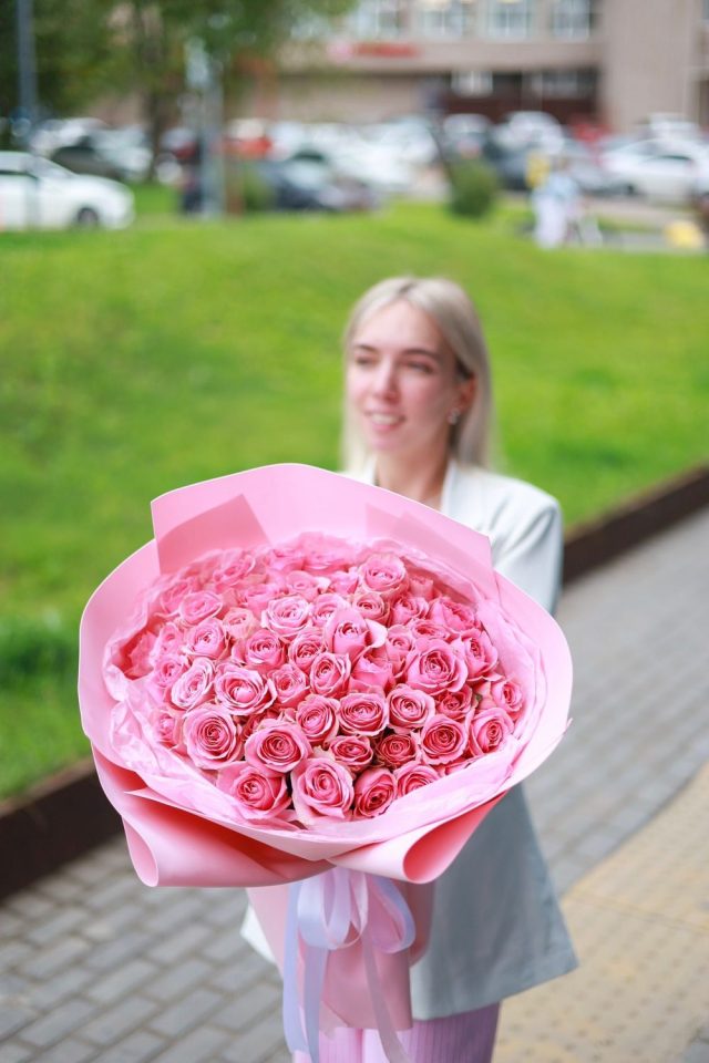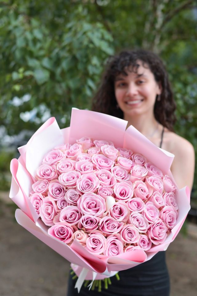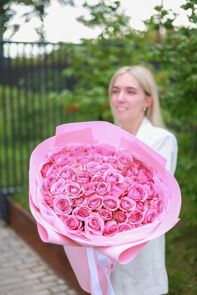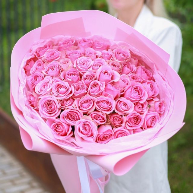 Прекрасный букет розовых роз. Такой классический букет способен подарить самые приятные впечатления!