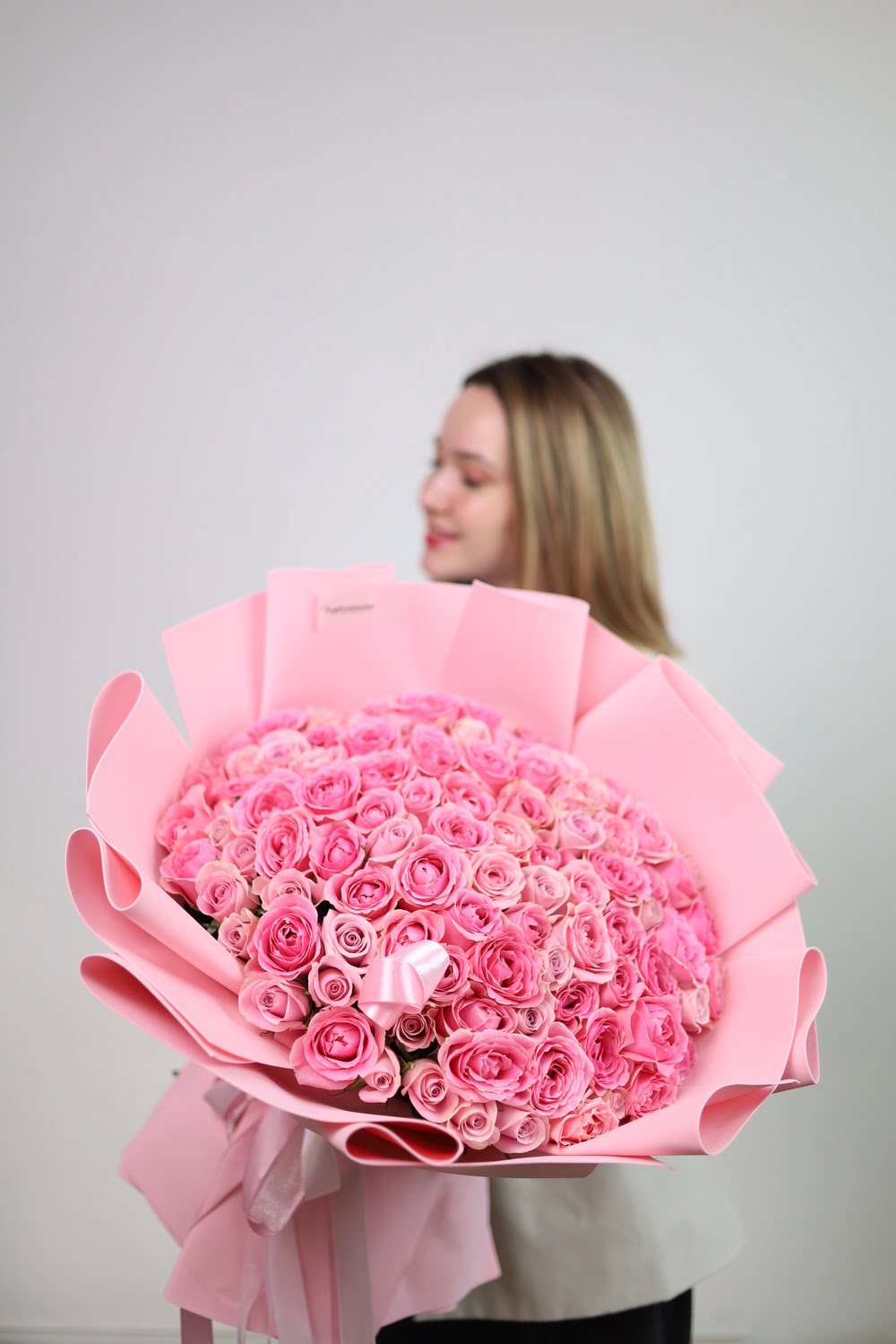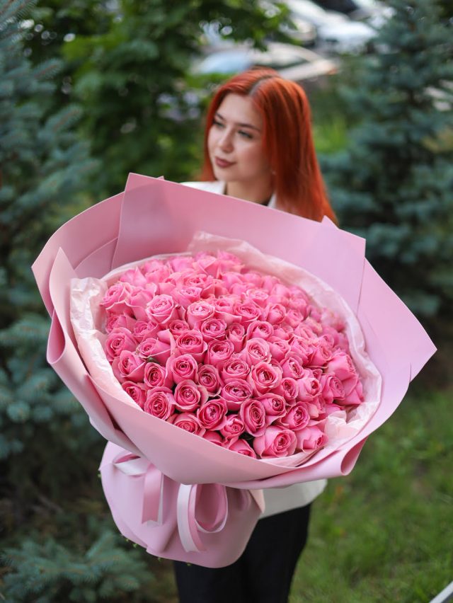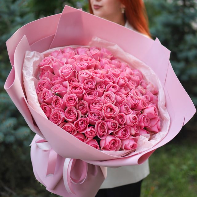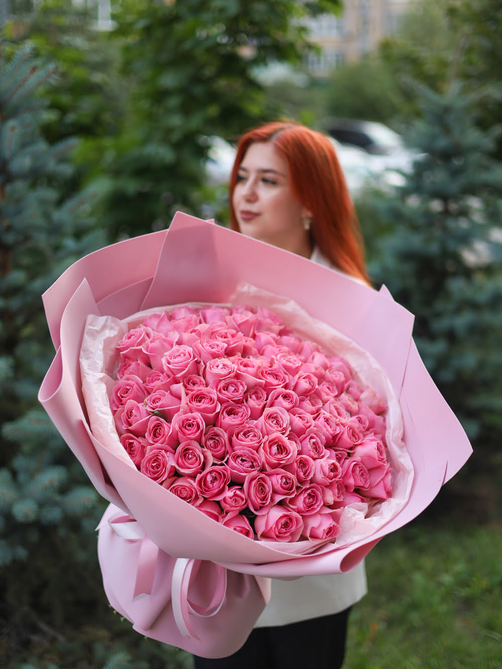 Большой роскошный букет из 101 розовой розы. Возможен микс.