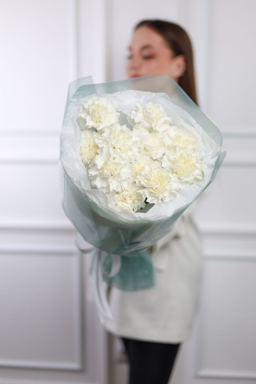 Букет стойких диантусов в оформлении.