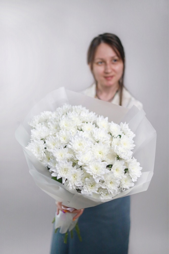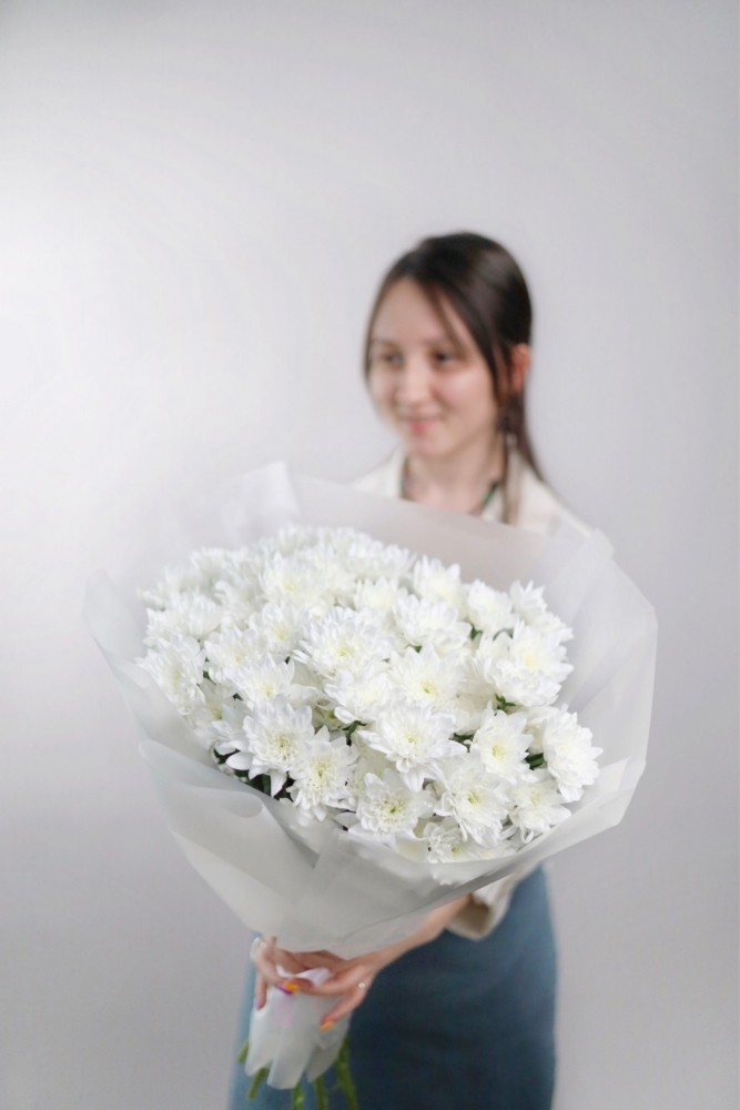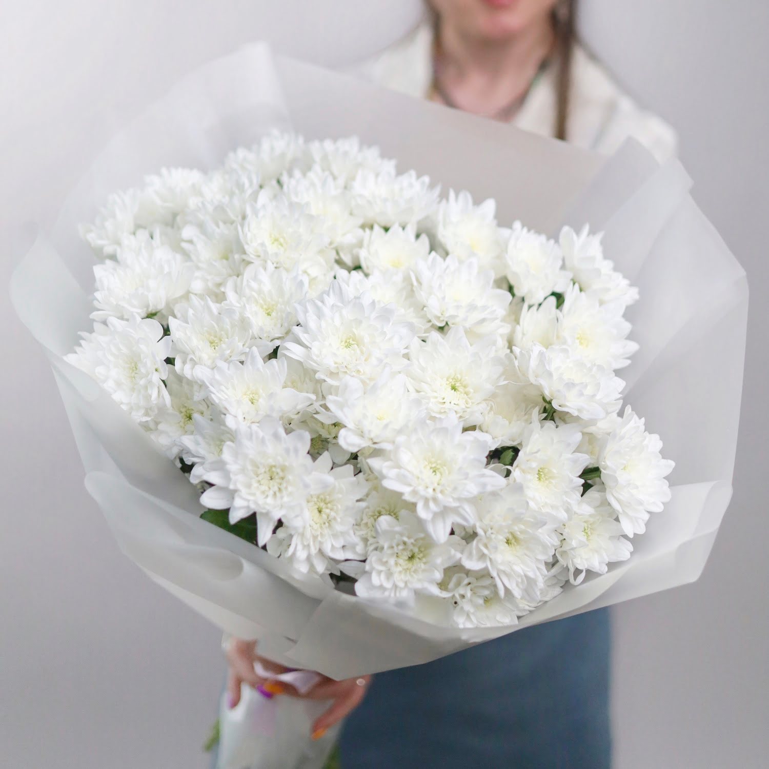 Восхитительный букет из 9 веток белых кустовых хризантем сорта Балтика.