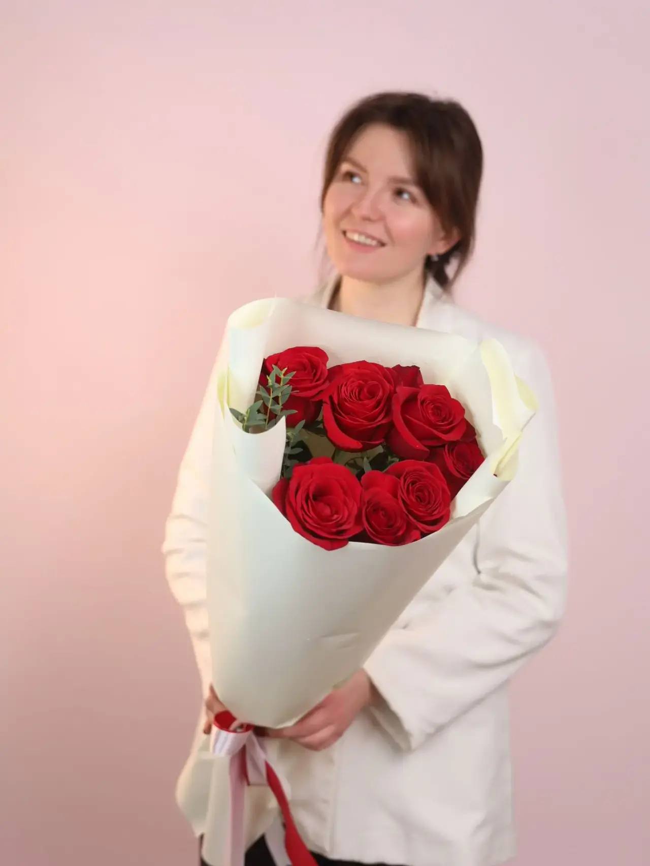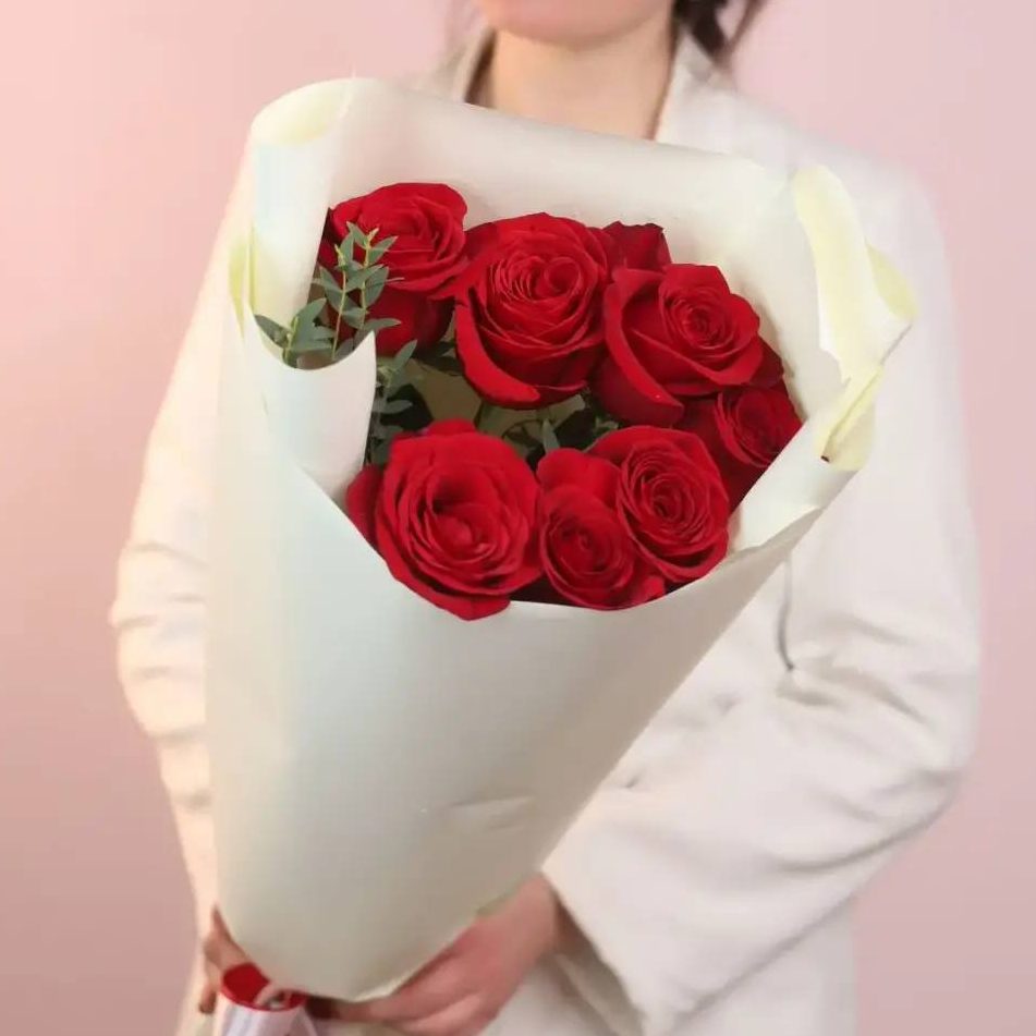 Красивый букет из 7-ми эквадорских роз в стильном оформлении.