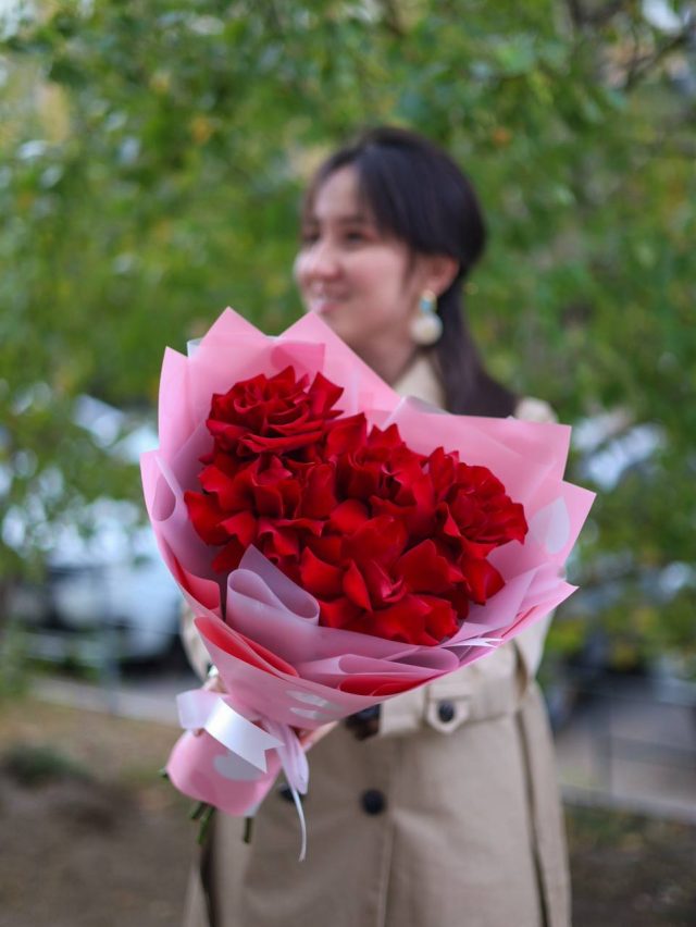 Все букеты собираются максимально похожими, в том числе и оформление.