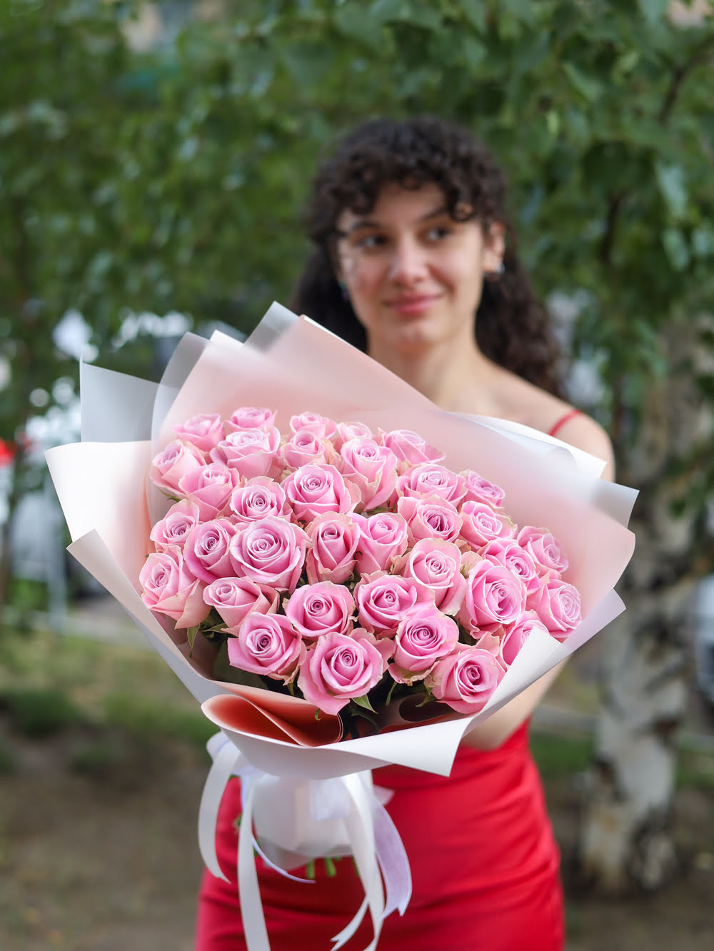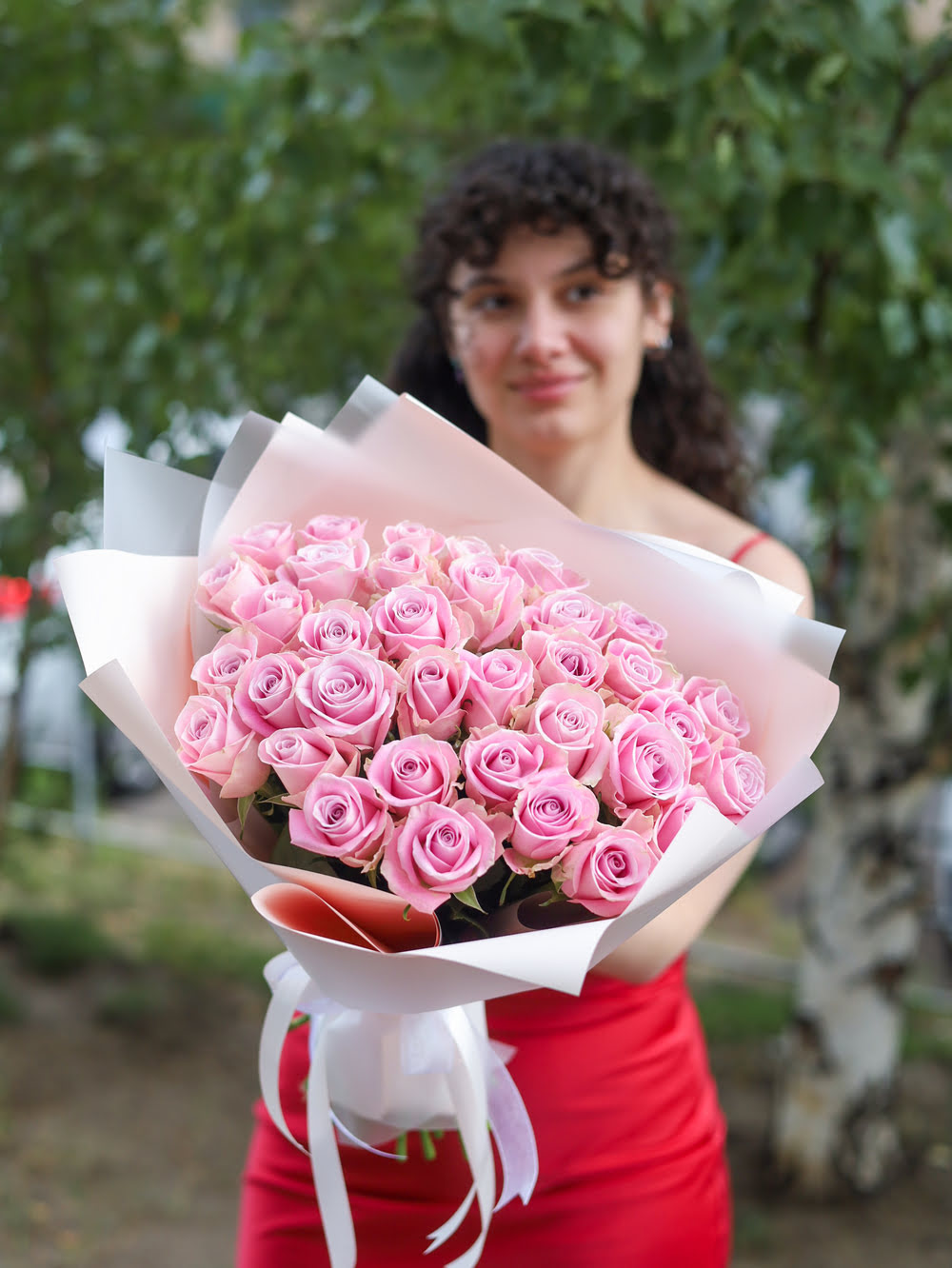 Букет из 35 розовых розочек
