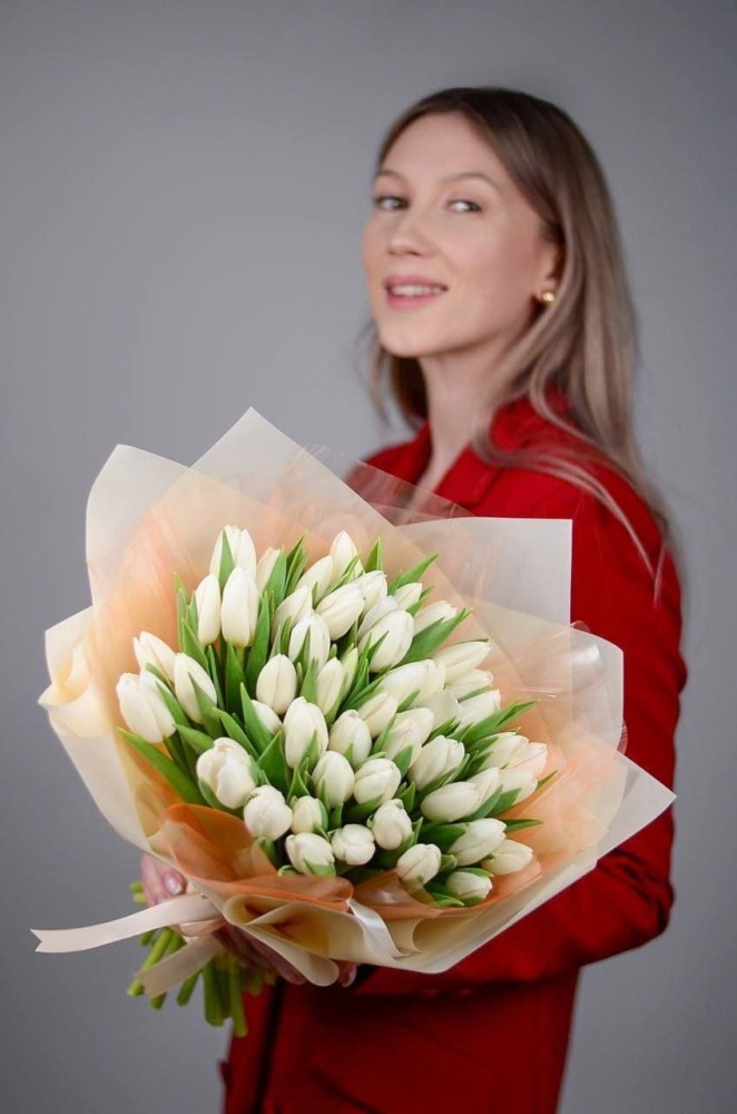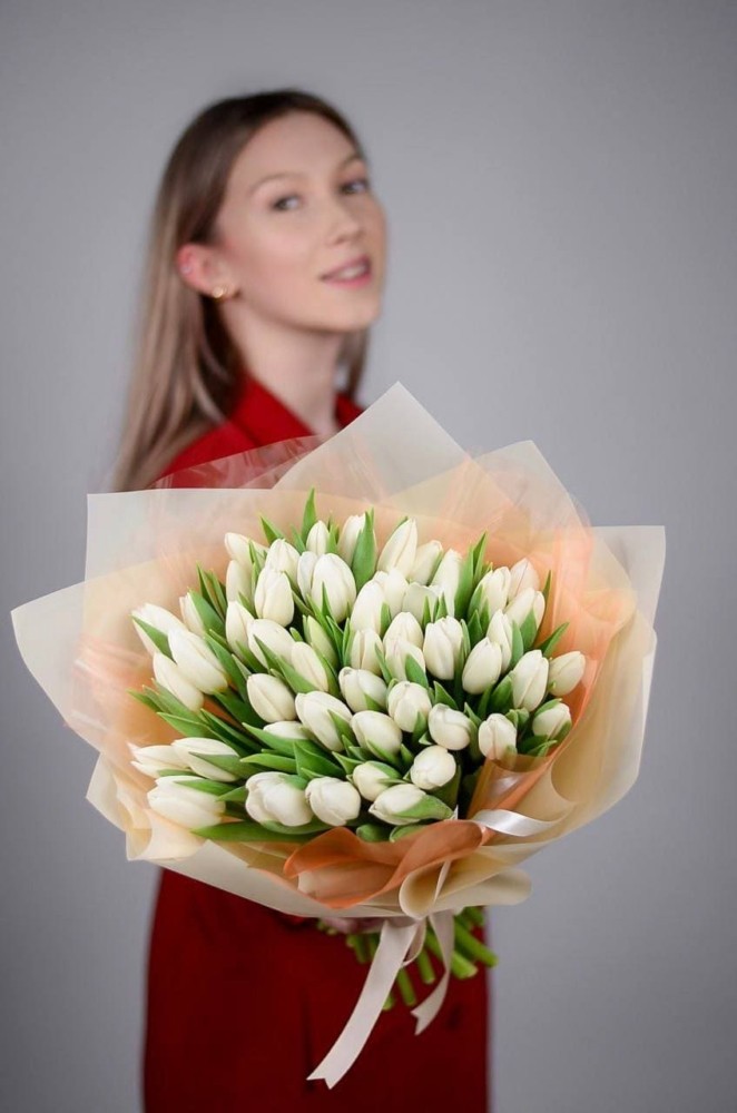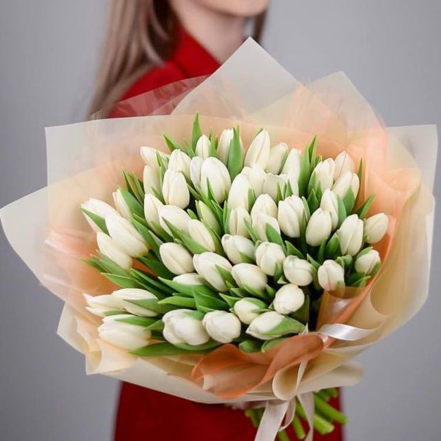 Стильный и красивый букет из 51 белоснежного тюльпана.