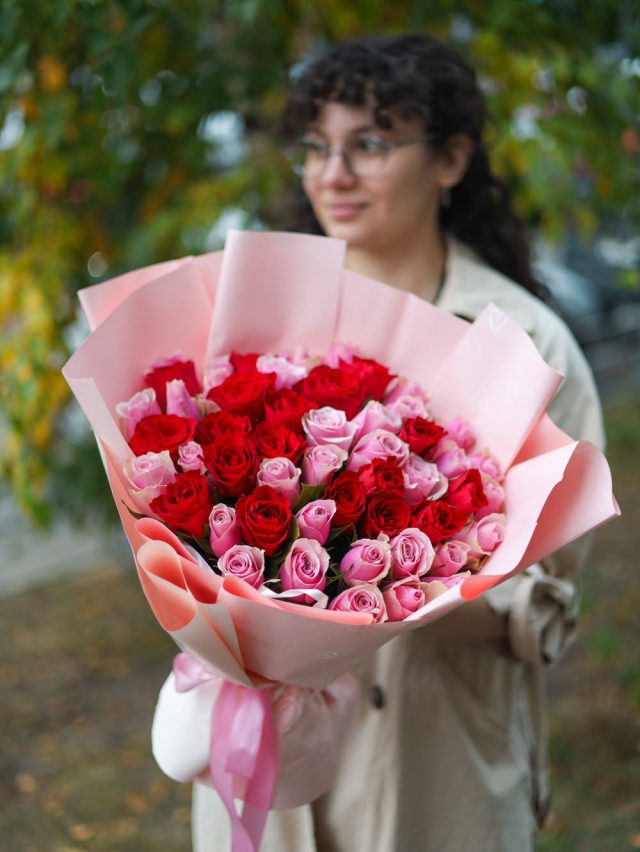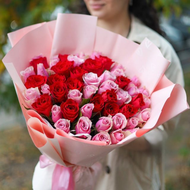 Букет из 51 розы микс в оформлении