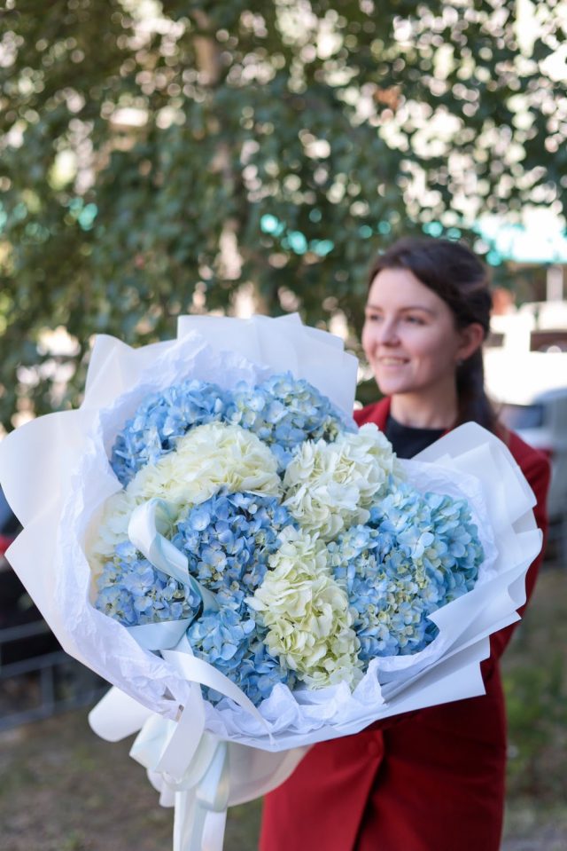 Большой букет из 11 гортензий
