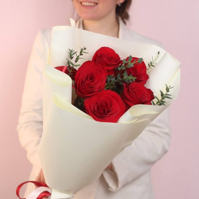 Все букеты собираются максимально похожими, в том числе и оформление.