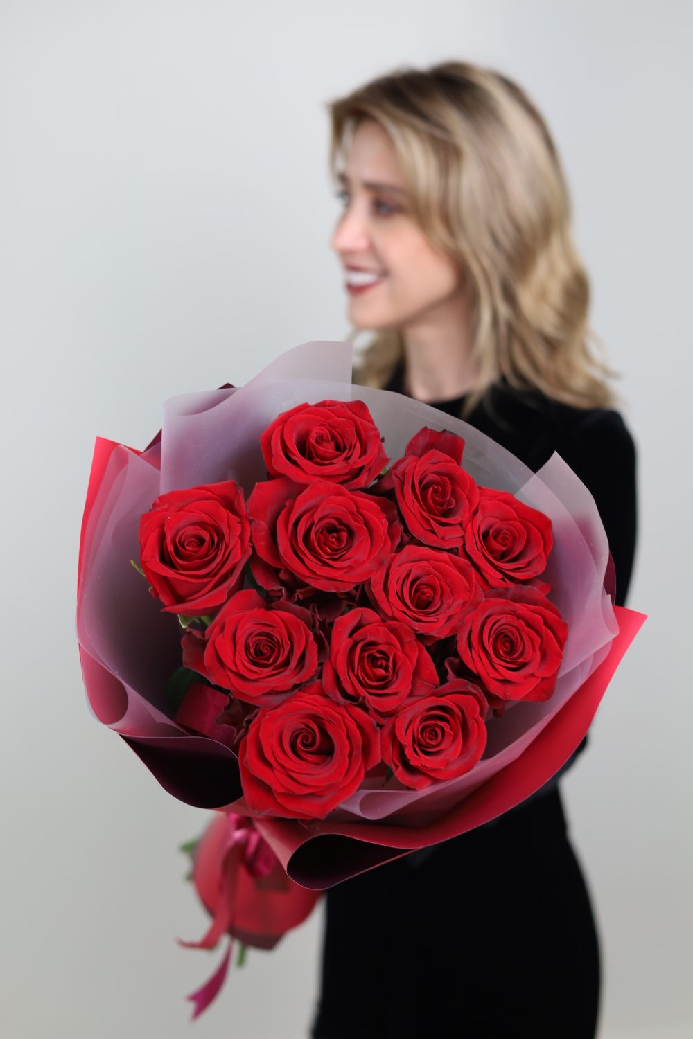 Все букеты собираются максимально похожими, в том числе и оформление.