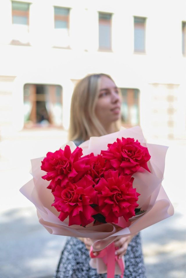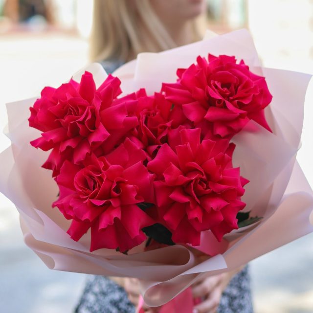 Букет потрясающих малиновых французских роз. Букет из 5-ти роз.