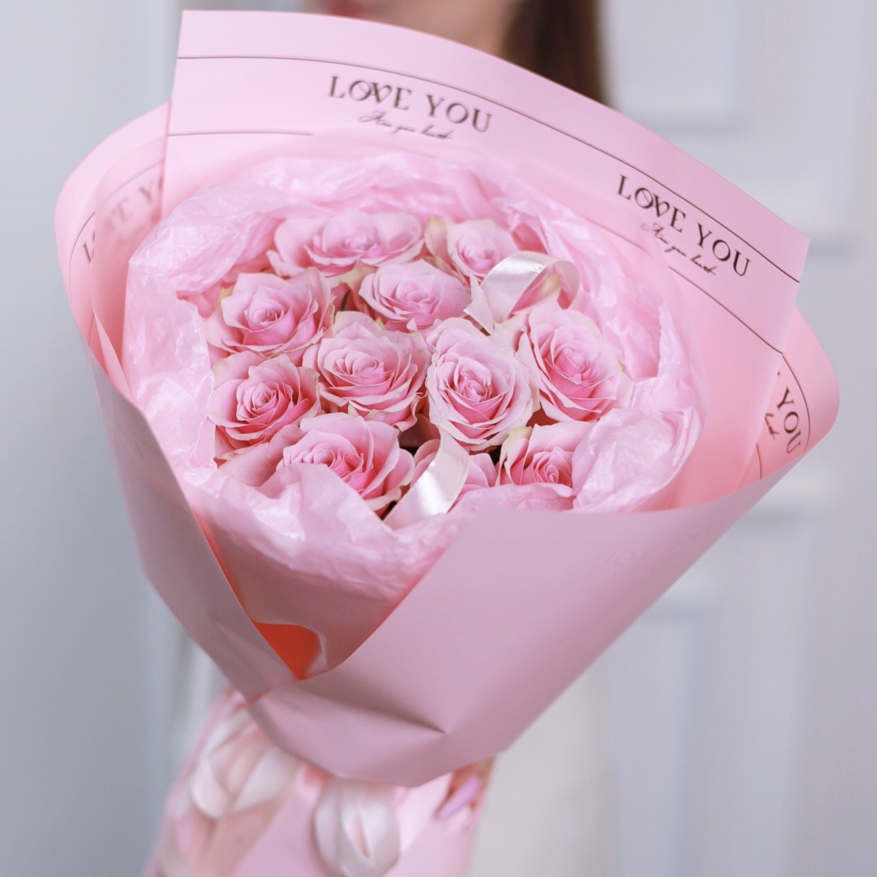 Все букеты собираются максимально похожими, в том числе и оформление.