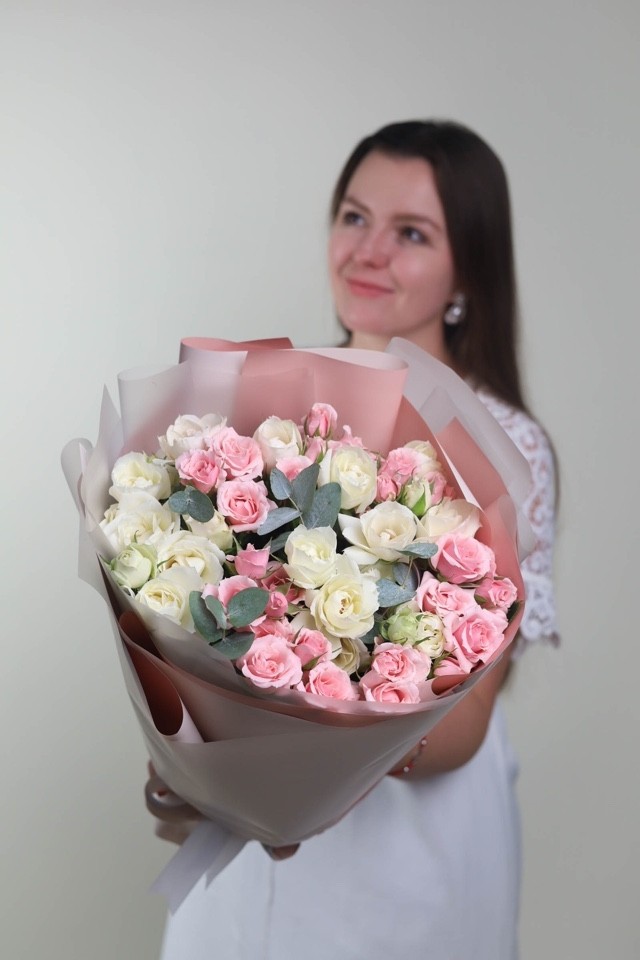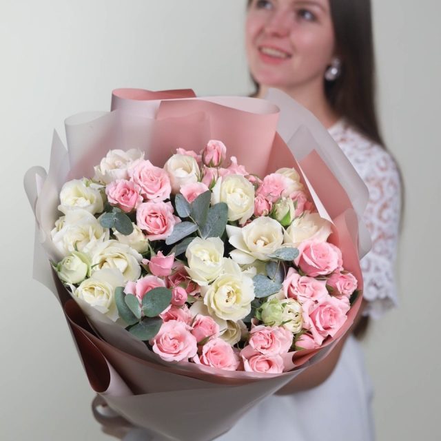 Букет кустовой розы и эвкалипта. Высота букета около 50 см