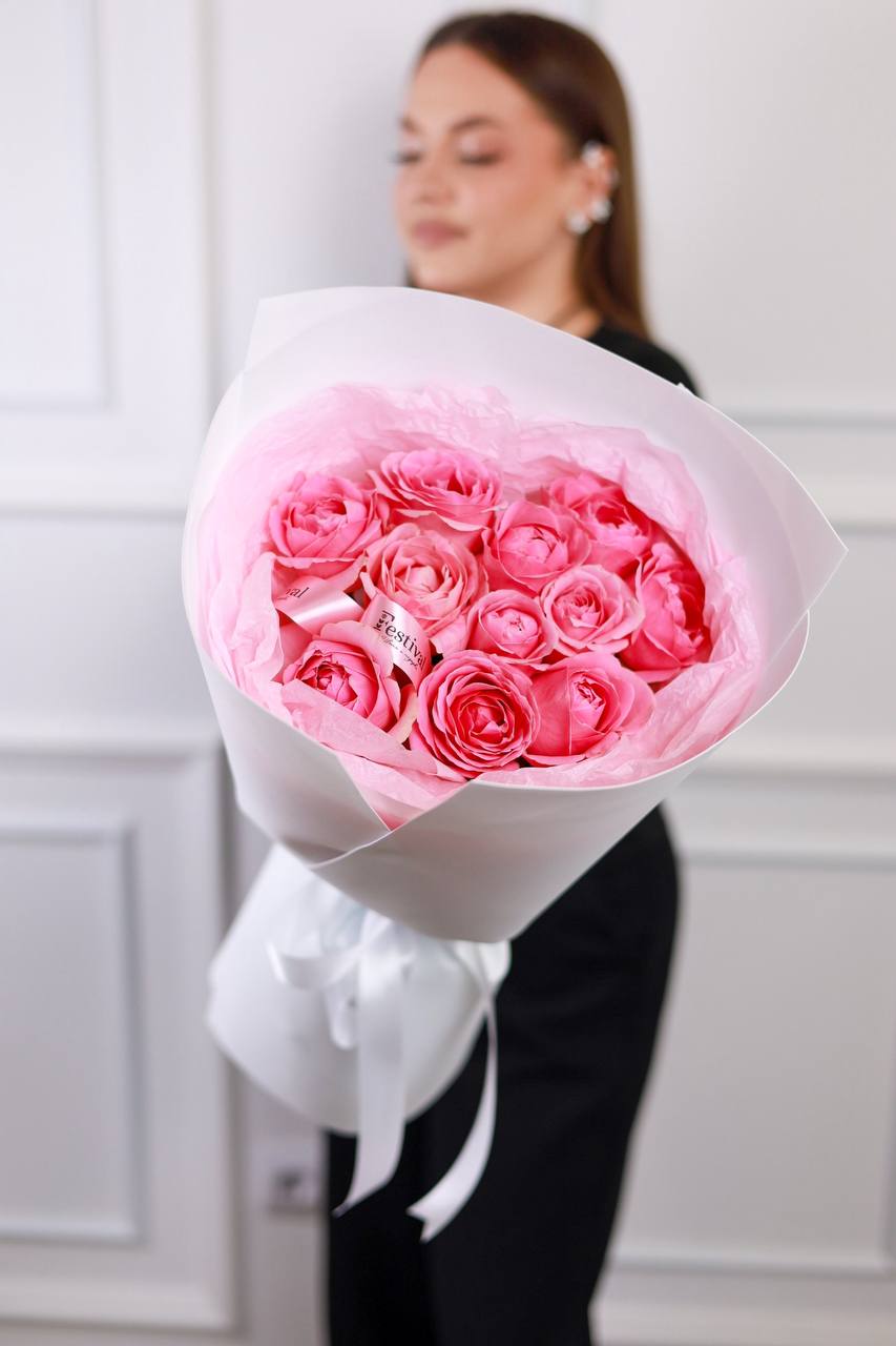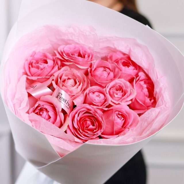 Букет из 11 роз в оформлении.