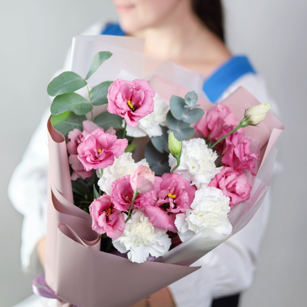 Нежный букет диантусов и эустомы