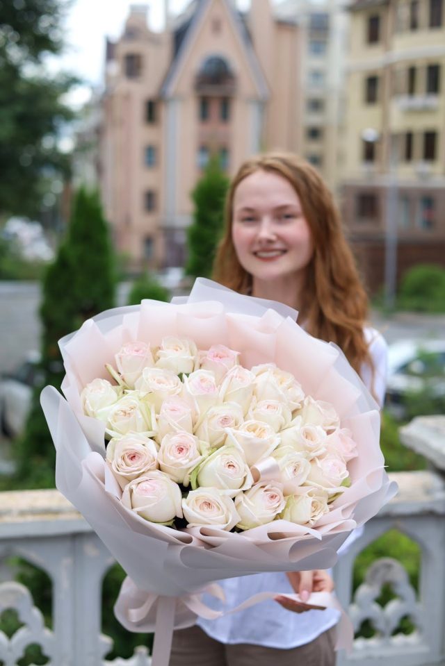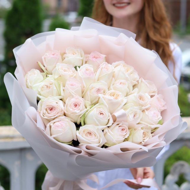 Роскошный букет пионовидных роз Вайт О’Хара, 21 шт.