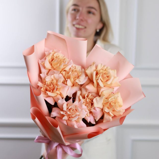 Букет прекрасных нежных французских роз Шиммер в оформлении. В букете 7 роз.