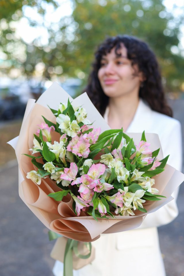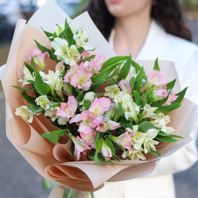 Необычайно стойкий букет альстромерий. Цвет – микс.