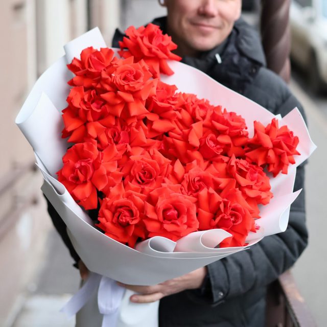 Все букеты собираются максимально похожими, в том числе и оформление.