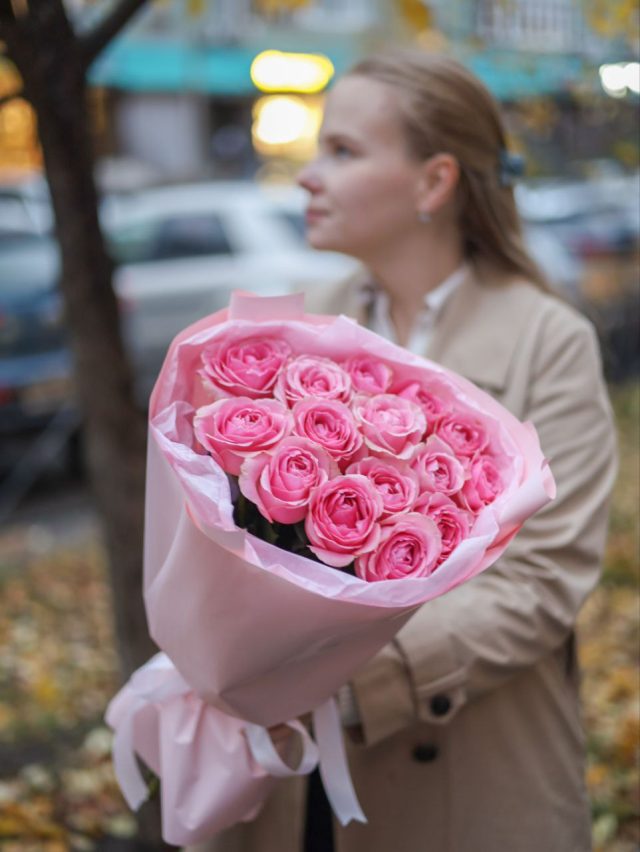 Букет из 15-ти роз в оформлении.