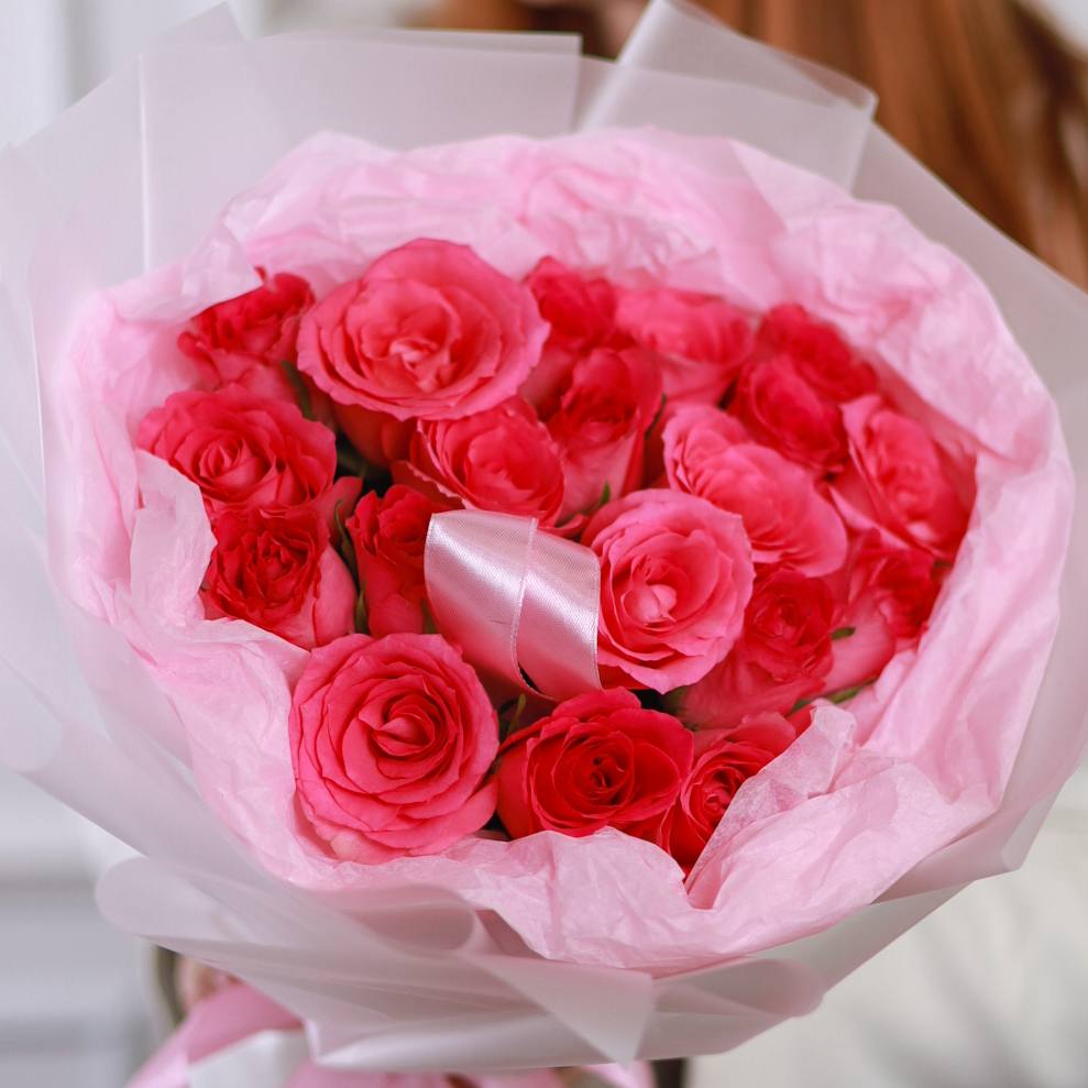 Букет из 19 роз в оформлении.