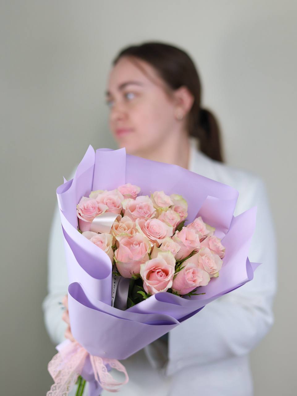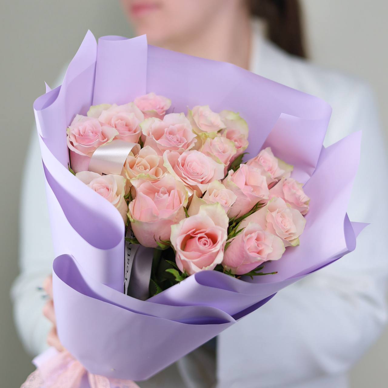 Букет из 19 розочек в оформлении.